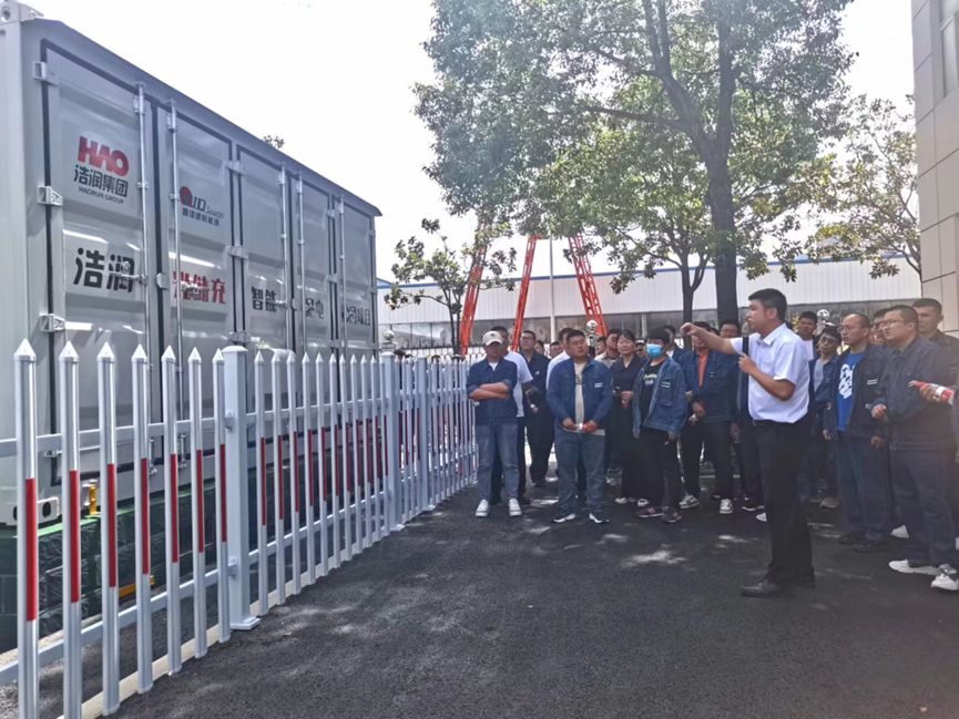 5月15日,浩潤集團迎來國網新疆電力有限公司2024年優秀供電所所長和班組長培訓班一行。培訓班在長沙理工大學開展專業管理能力和綜合素質提升培訓,本次前往我公司實地學習,旨在通過現場觀摩,深入了解并探討我公司在新型電力系統儲能領域相關技術,帶回思路、方法和案例。公司常務副總裁談騏豪、副總裁朱敏陪同參觀。